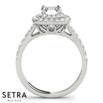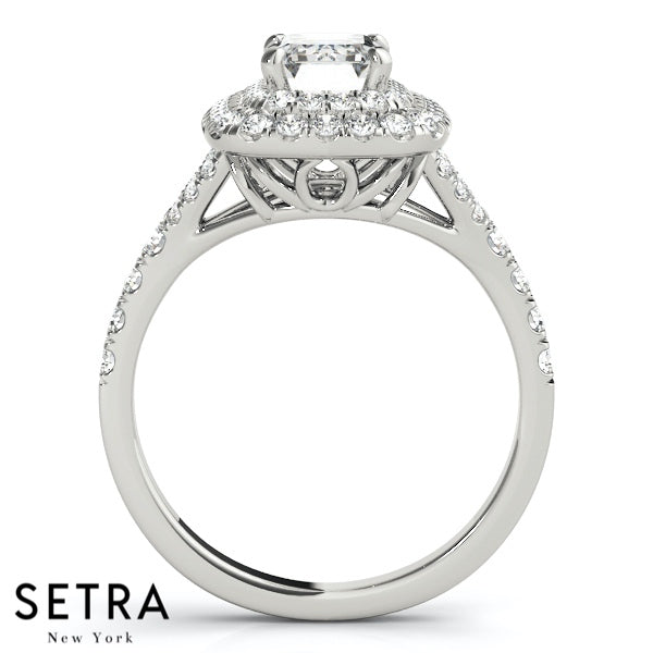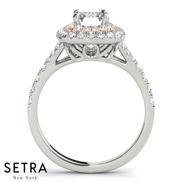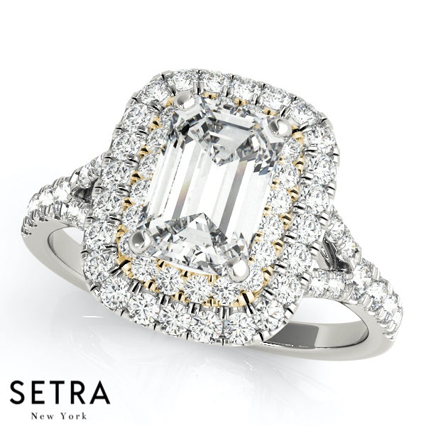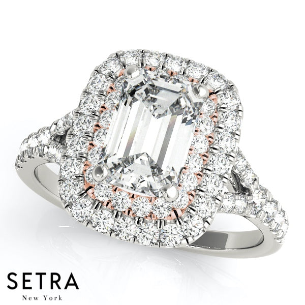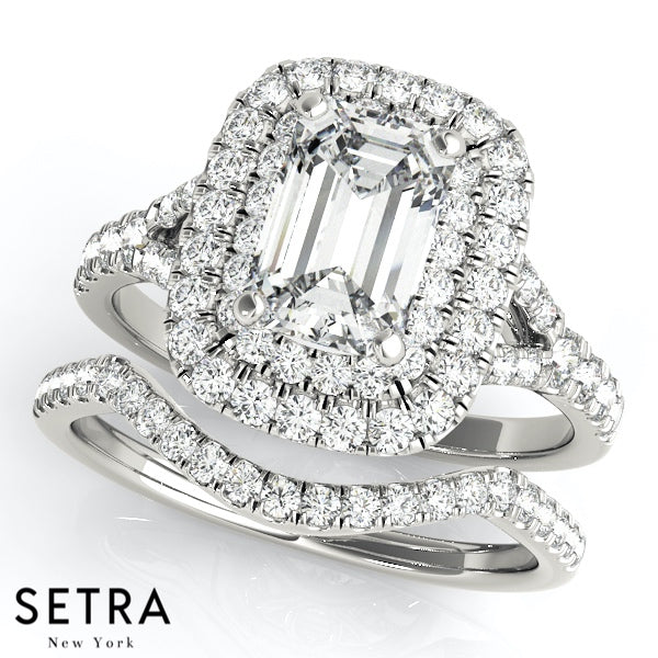 Set Of Engagement Rings 14kt Gold For Emerald Cut Diamond