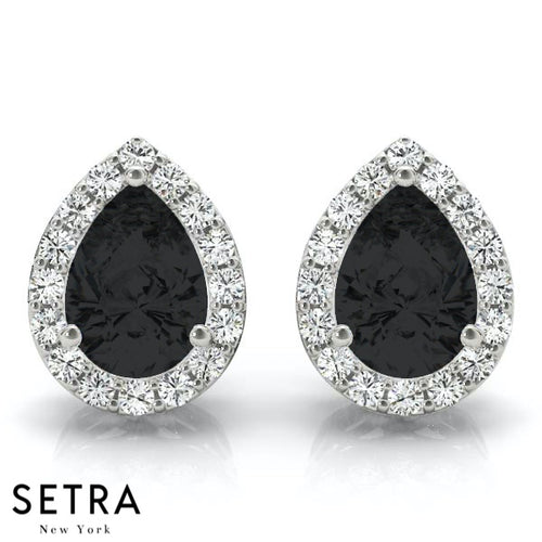 Black Diamond Pear Shape Halo Earring Halo 14kt Gold