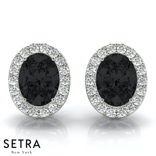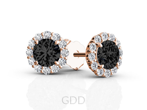 Halo Studs Earrings With Black Diamonds 14kt Gold