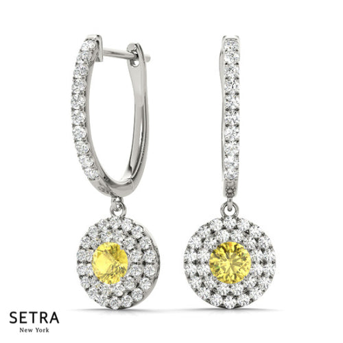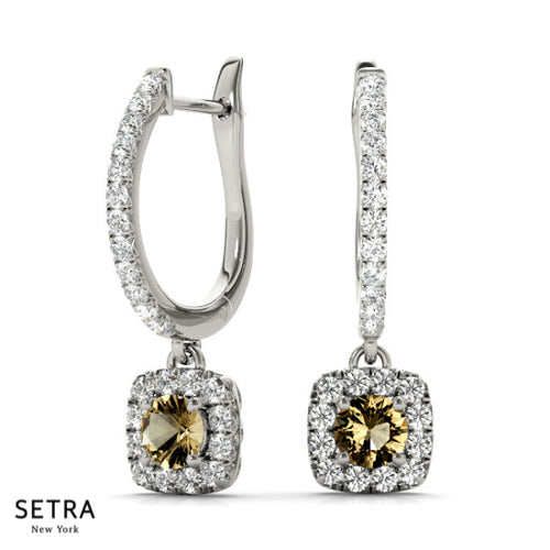 Yellow Sapphire & Round Cut Diamonds Dangling Earring 14kt Gold