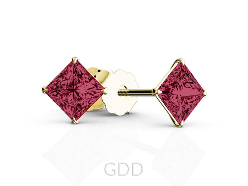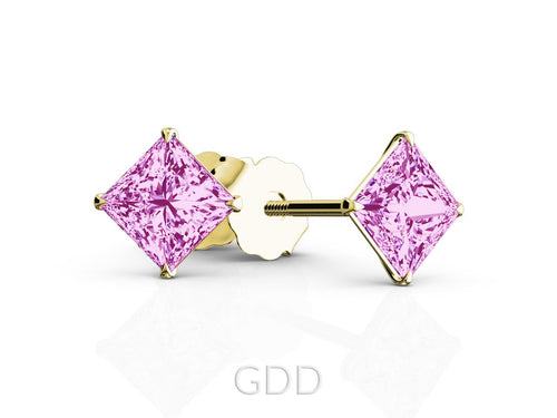 Pink Sapphire Princes Cut Diamonds Stud Earrings 14 kt Gold