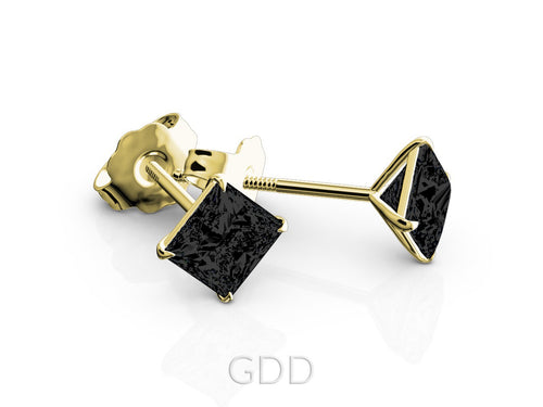 Black Princes Cut Diamonds Stud Earrings 14 kt Gold