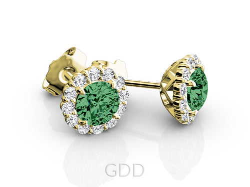 Halo Stud Diamond & Emerald Gem 14kt Gold Earrings