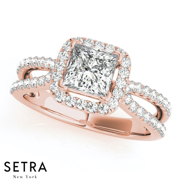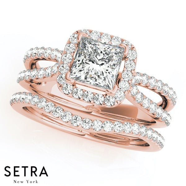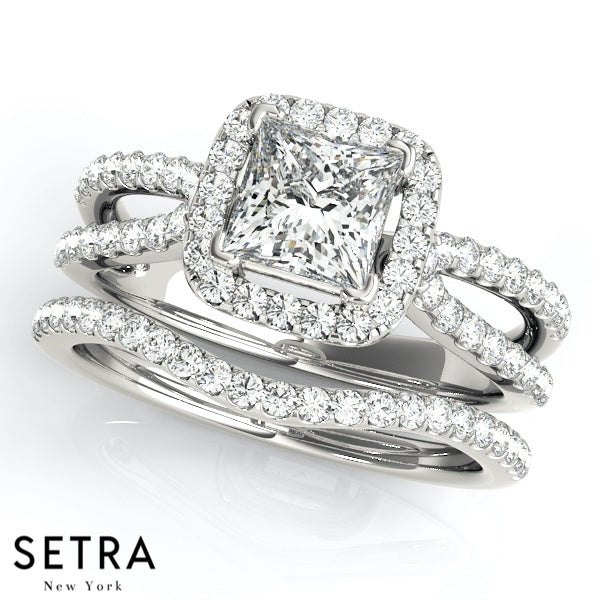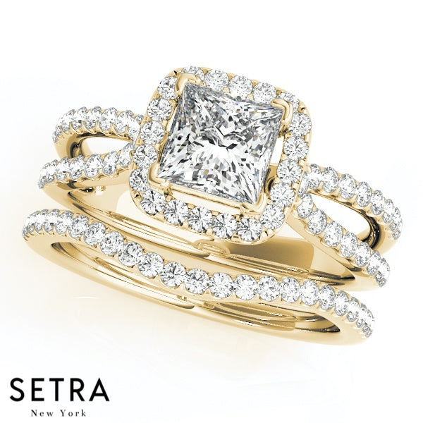 Lab Grown Diamonds Princess Cut Set Of Engagement 14kt Gold Rings