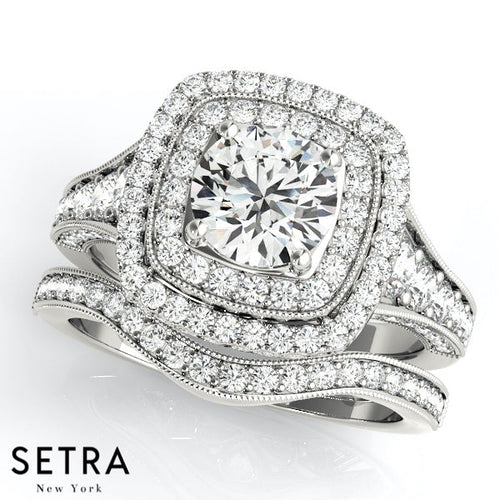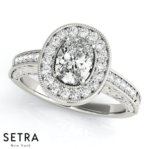 Lab Grown Diamonds Vintage Halo Set Of Engagement 14kt Gold Rings