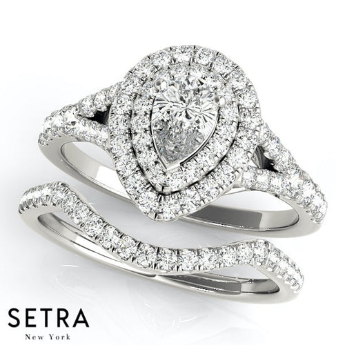 Lab Grown Diamond Set Of Pear Shape Engagement14kt Gold Rings