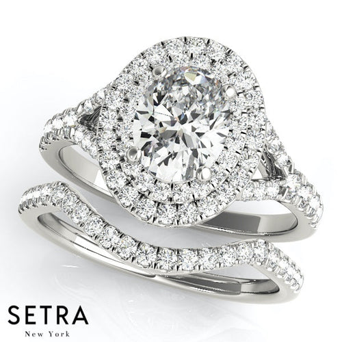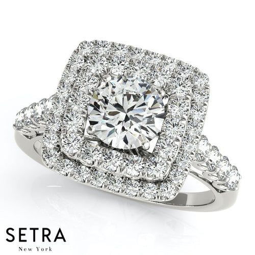 Lab Grown Diamonds Double Halo Row Round Cut Engagement 14kt Gold Ring