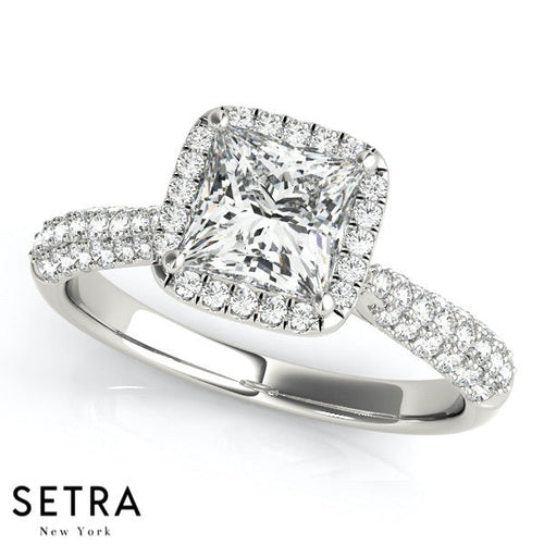 Lab Grown Diamonds 14kt Gold Princess Cut Halo Engagement 14k Gold Ring Micro-Pave Set