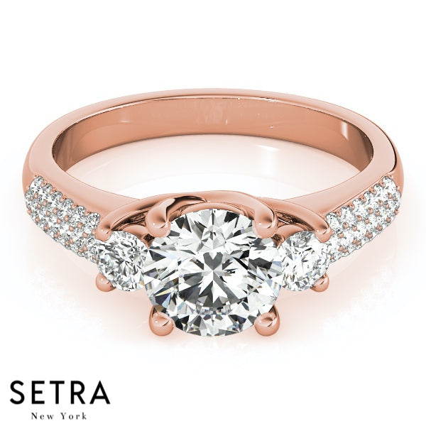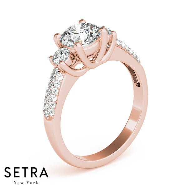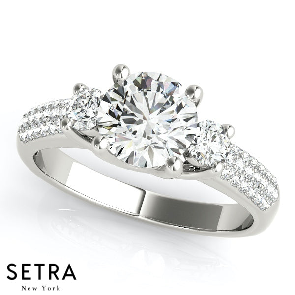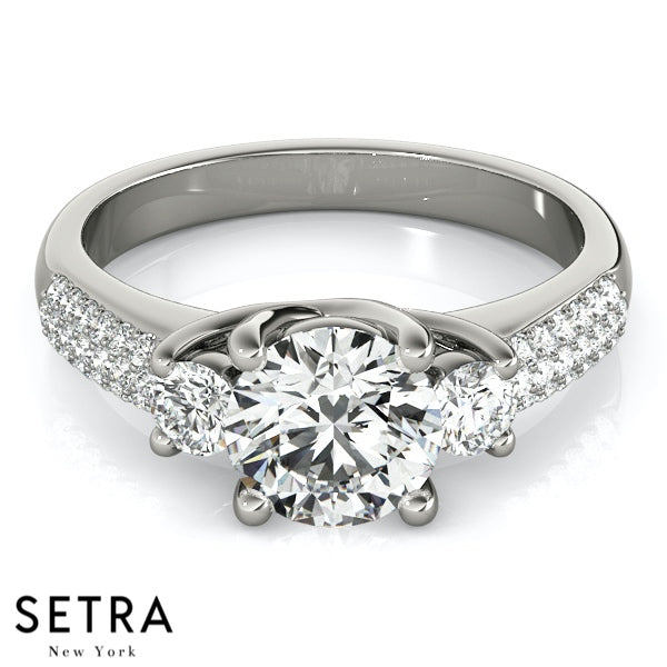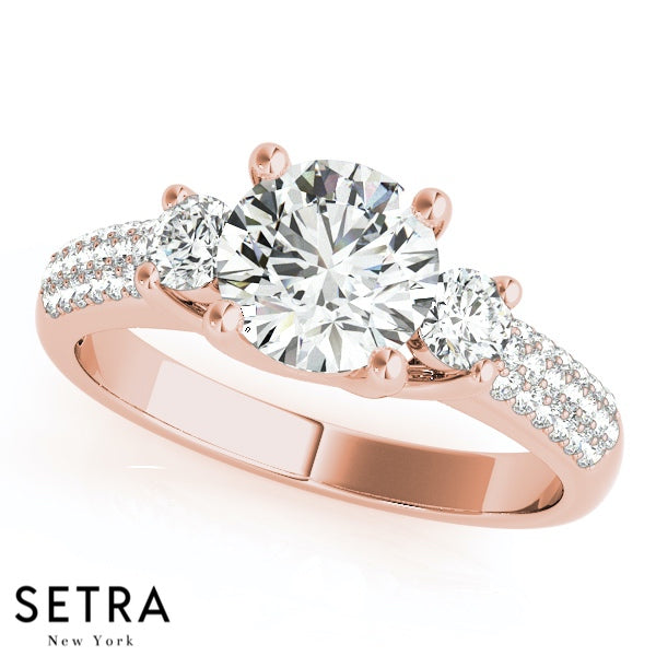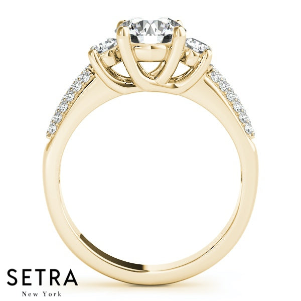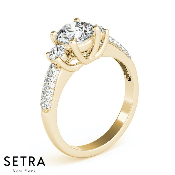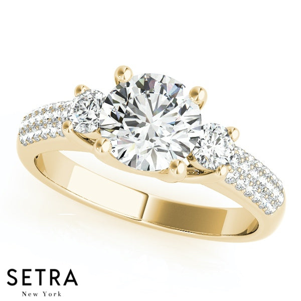 Lab Grown Diamonds 3 Stone Micro-Pave Setting Engagement 14kt Gold Ring