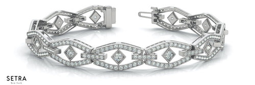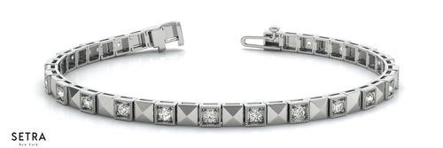 Princess Cut Diamonds Women's / men's Solid Tennis Bracelet In 14k Gold