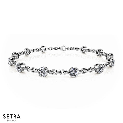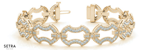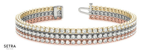 Round Cut Diamonds Women's / Men Solid Tennis Bracelet In 14k Gold
