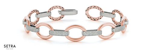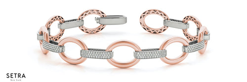 Solid Women's & Men's Fancy Diamonds Bracelet 14kt Fine Rose Gold