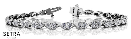 Marquise Illusion Setting Diamonds Solid Tennis Bracelet In 14k Gold