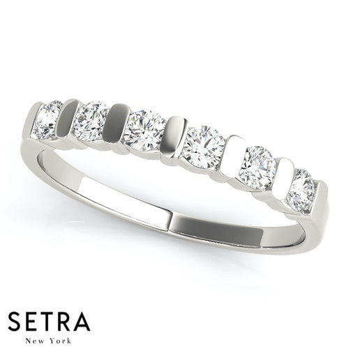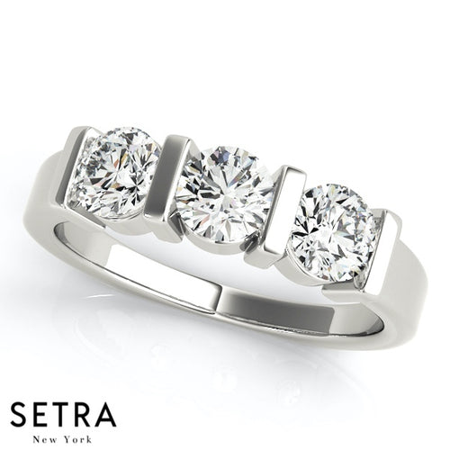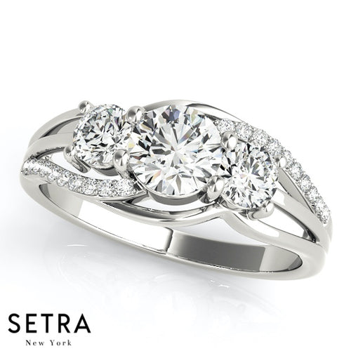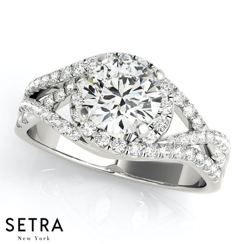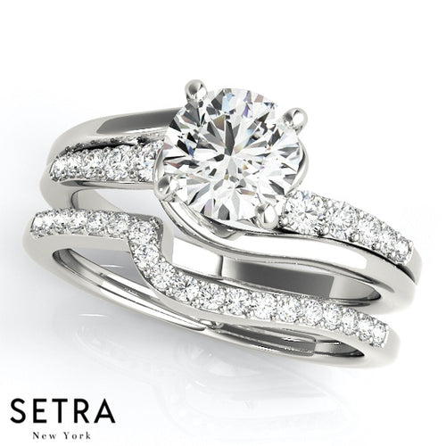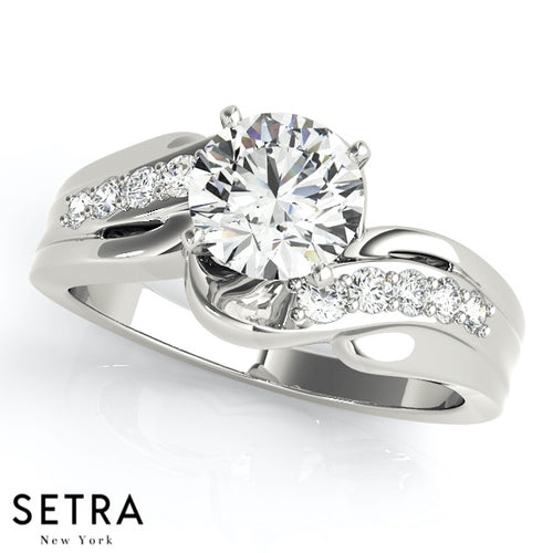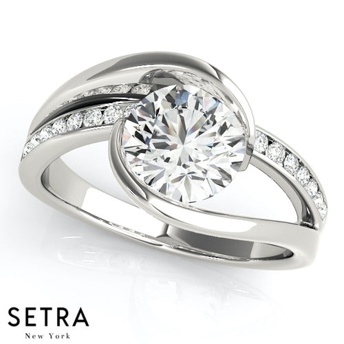 Round Cut Band Diamond Engagement Ring 14K Gold