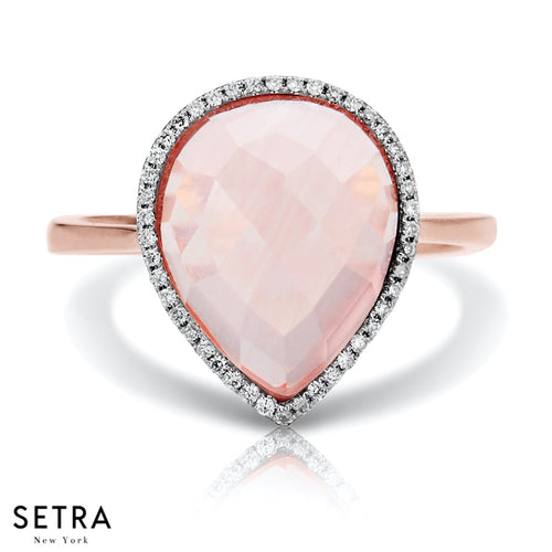 Pink Quartz 14kt Gold Right Hand Diamond Ring
