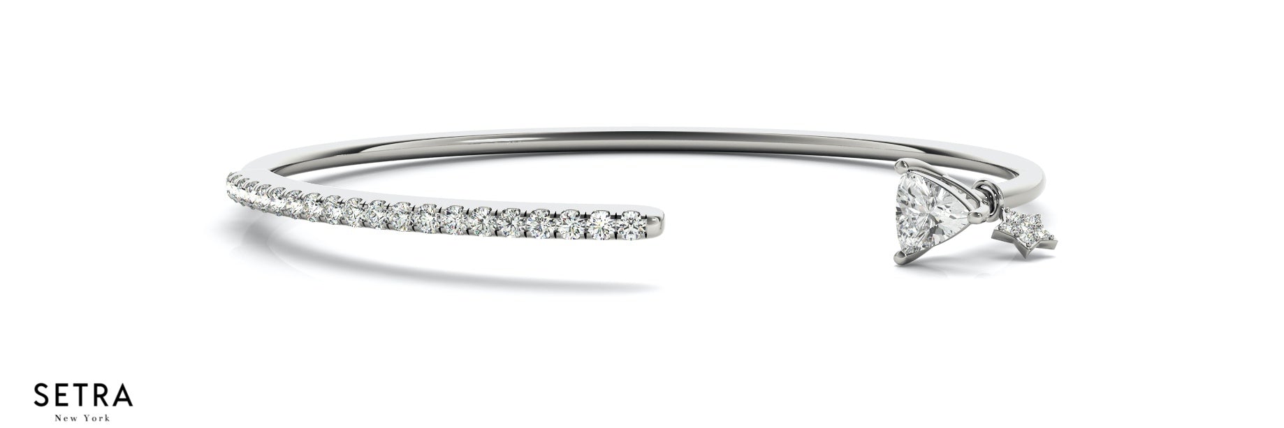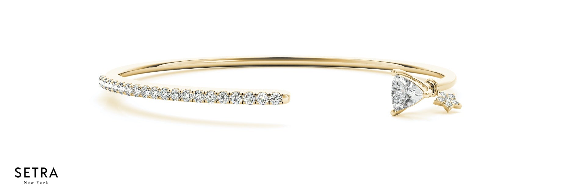 Lab Grown Diamond Center Triangle Shape Halo Bangle Bracelets 14kt Gold