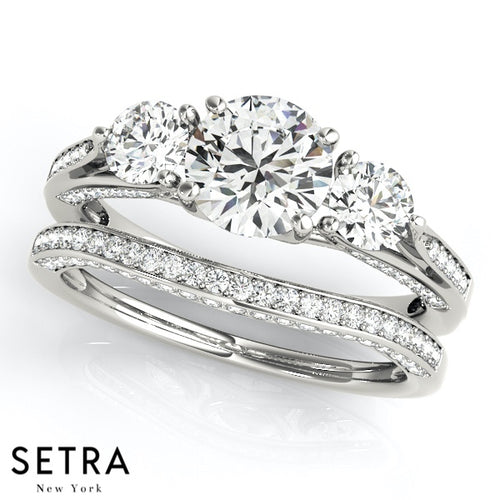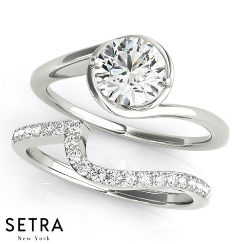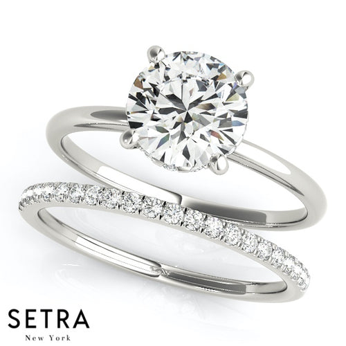Set Of Solitaire Diamond Engagement Ring 14K Gold