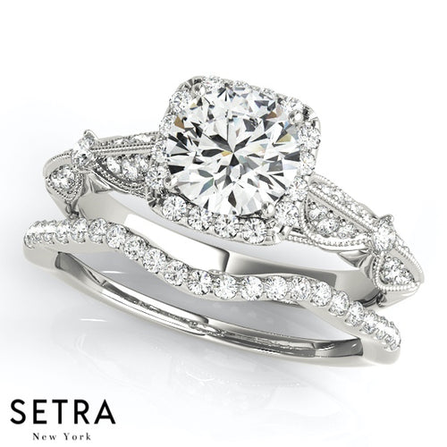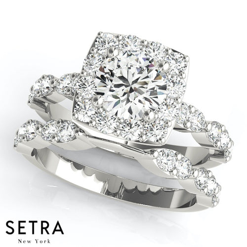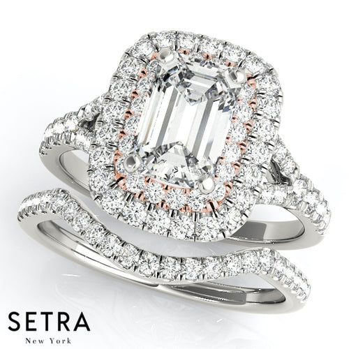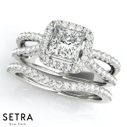 Set Of Split Shank Halo Diamond Engagement Ring 14kt Gold