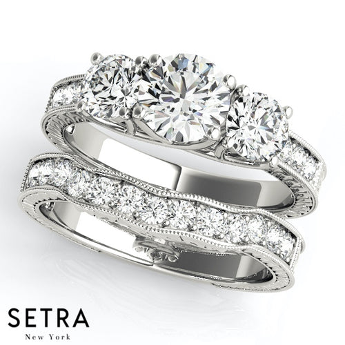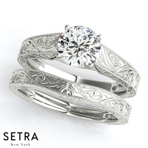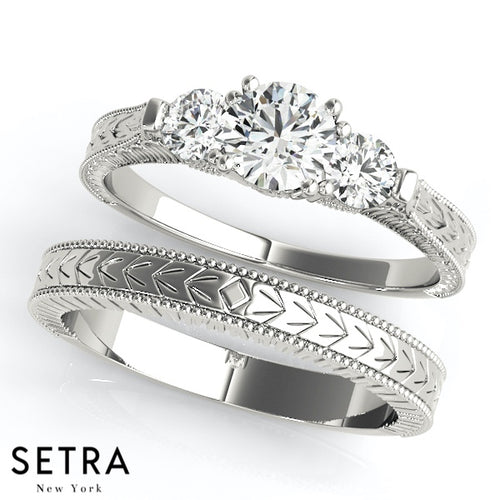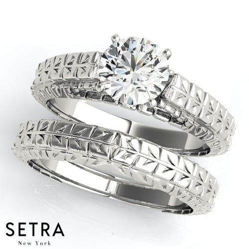 Solitaires Matching Set Of Engagement & Wedding Band 14kt Gold Rings