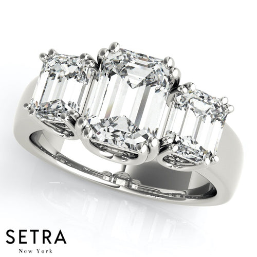 Set Of Engagement Rings 14kt Gold For Emerald Cut Diamond