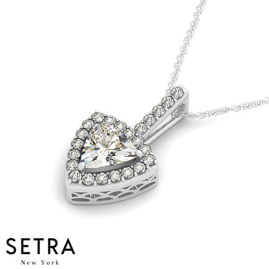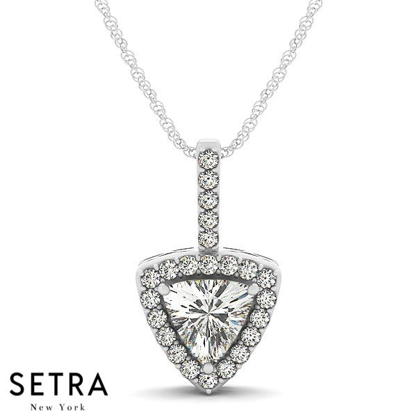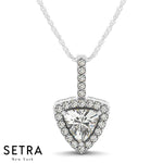 Trillion Cut Diamond Halo Necklace 14kt Gold