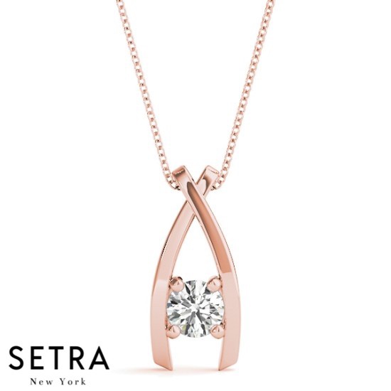 WishBone Diamond Solitaire Necklace 14kt Gold