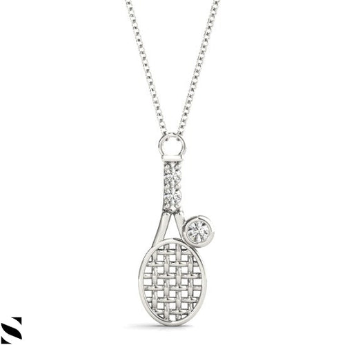 Lab Grown Tennis Racquet Diamond Necklace 14 kt Gold