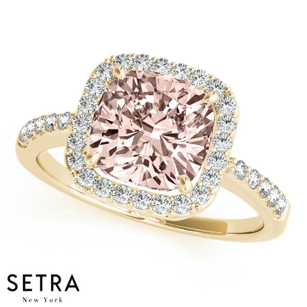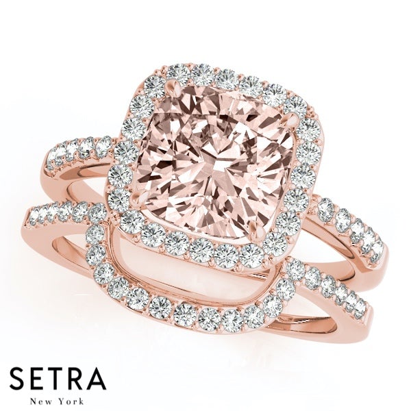 Lab Grown Diamonds & Genuine Morganite Set Of Ring 14kt Gold