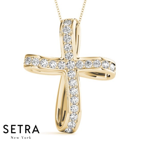 Channal Setting 14 Fine Gold Diamond Cross Neckless