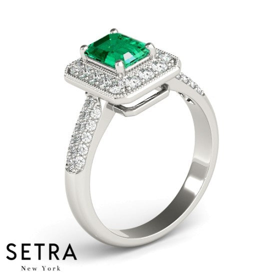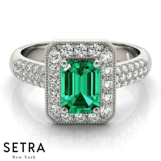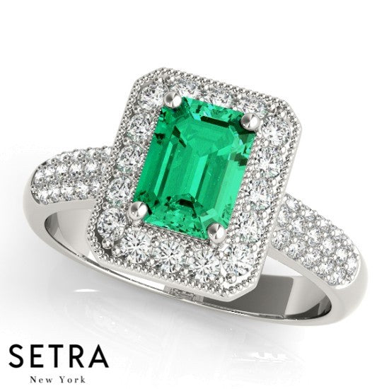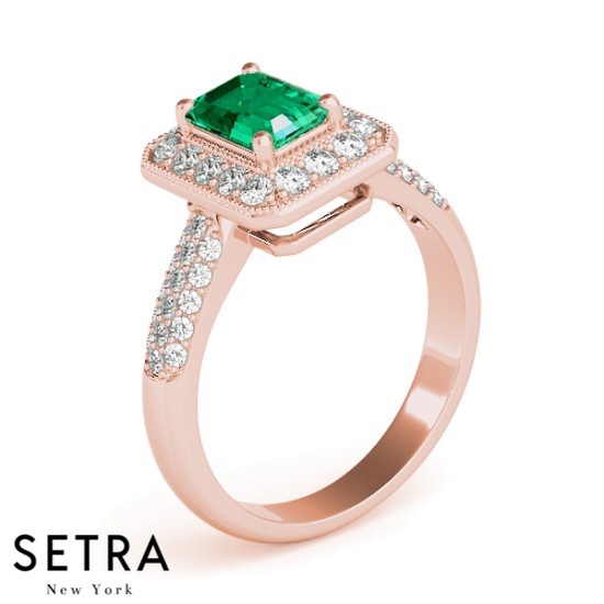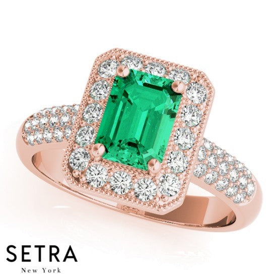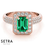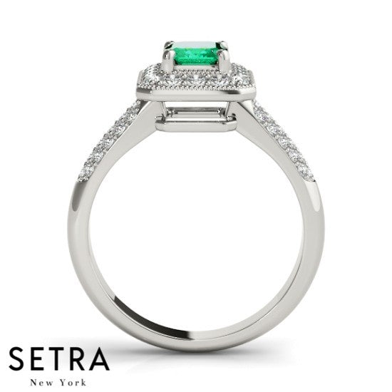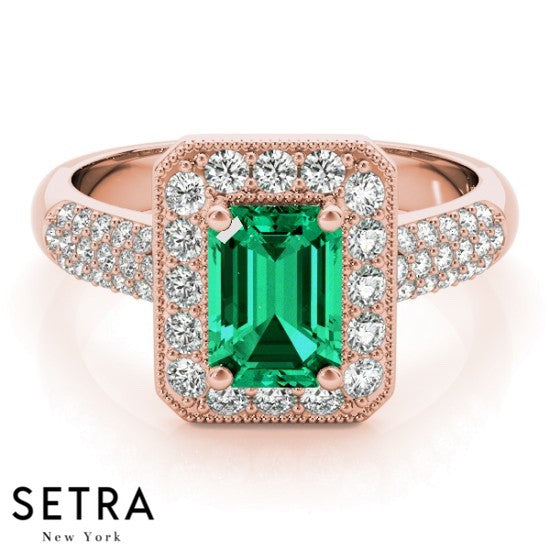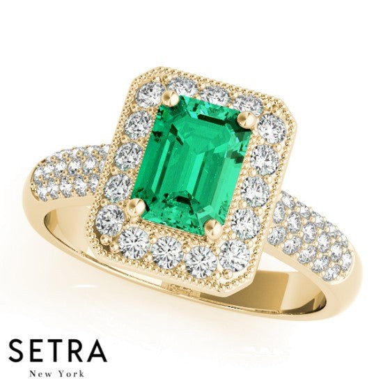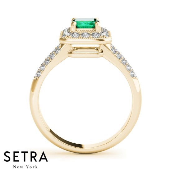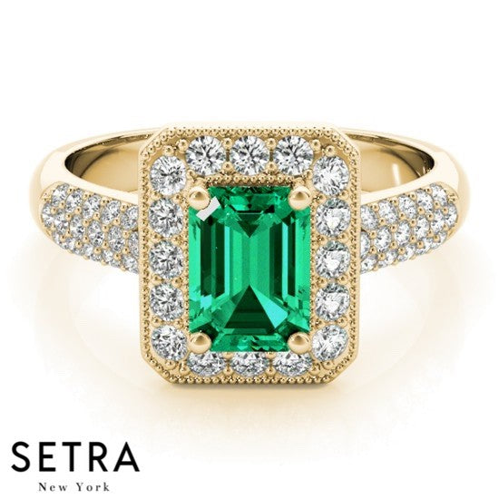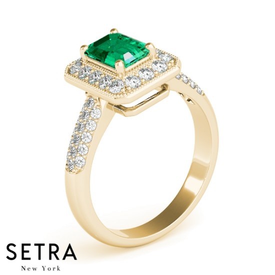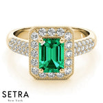 14k Gold Center Radiant Gem & Diamonds Halo Micro-Pave Ring