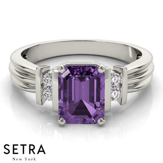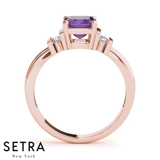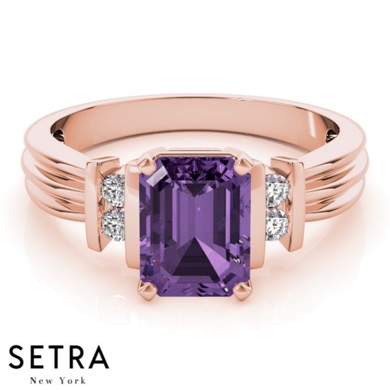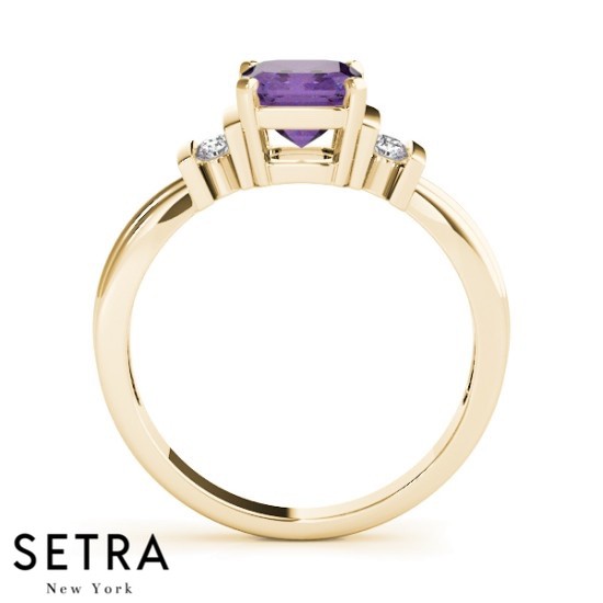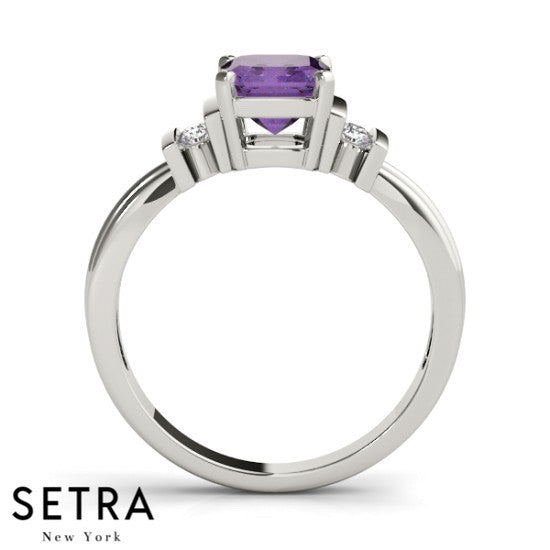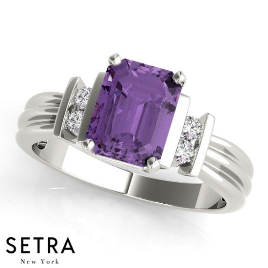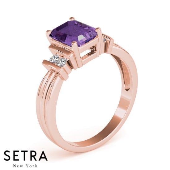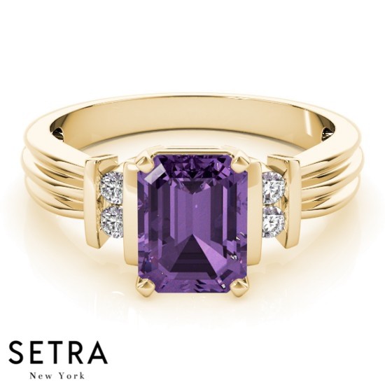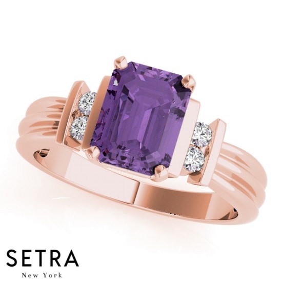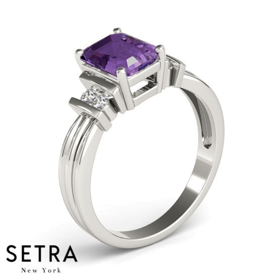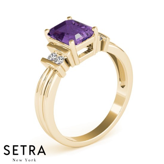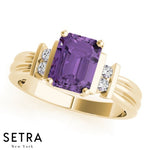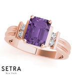14kt Emerald Cut Amethyst & Diamonds Classic Ring