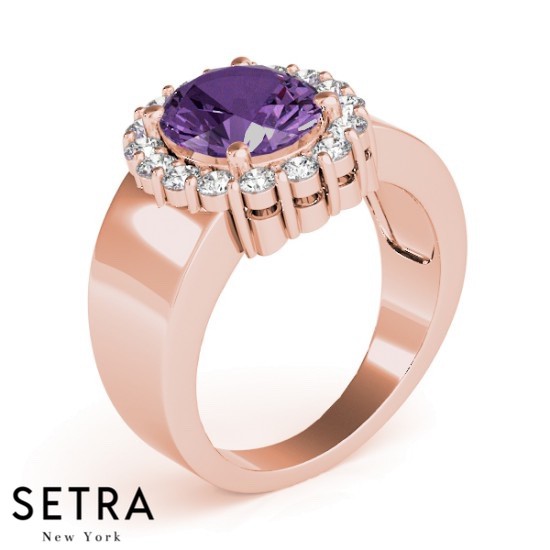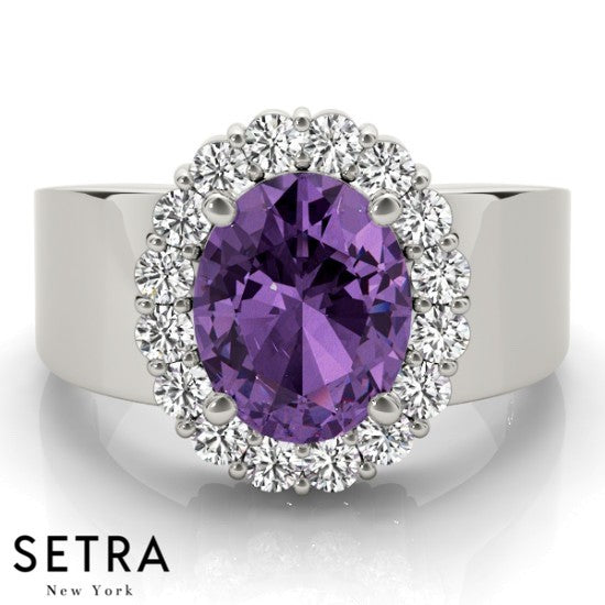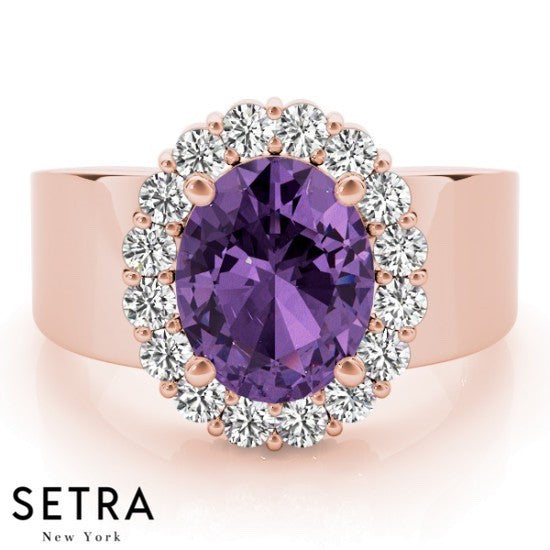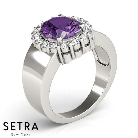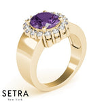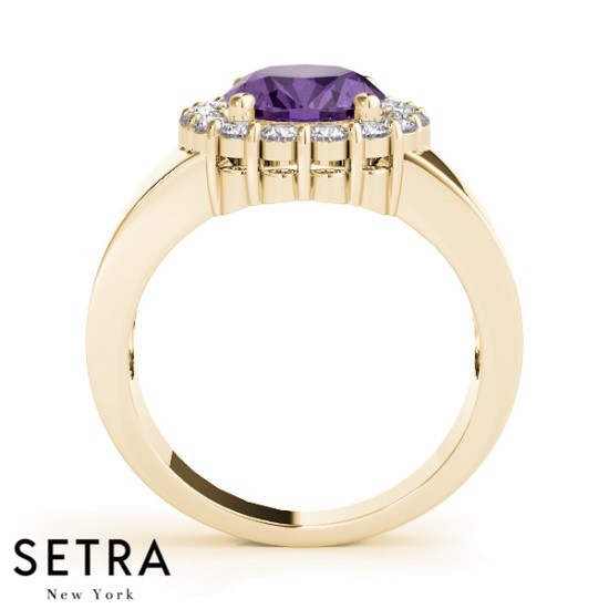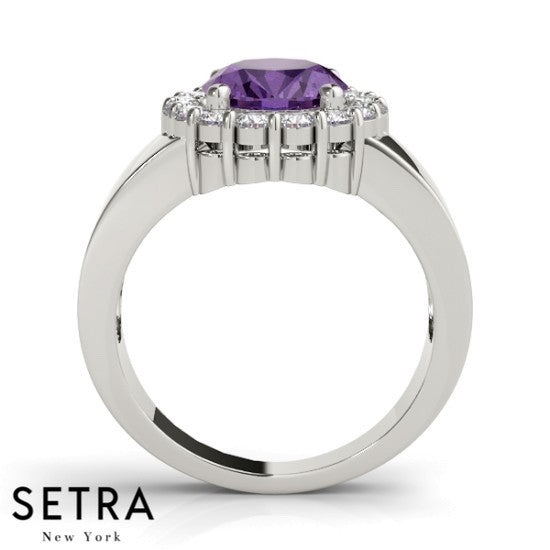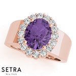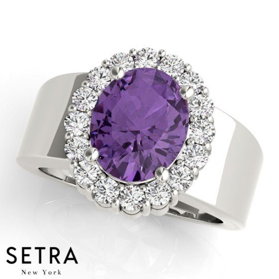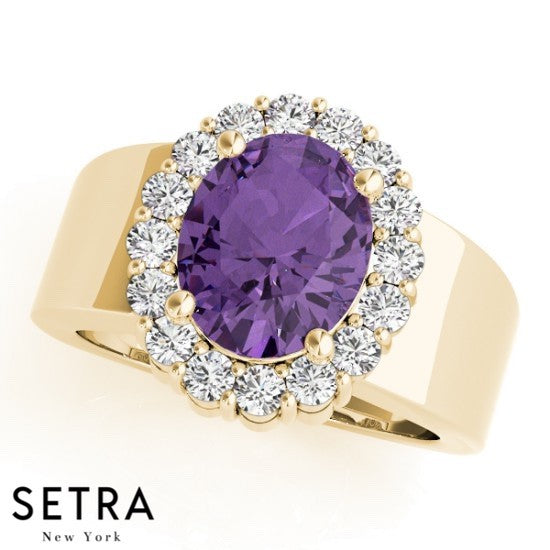 14kt Oval Cut Amethyst & Diamonds Classic Halo Ring