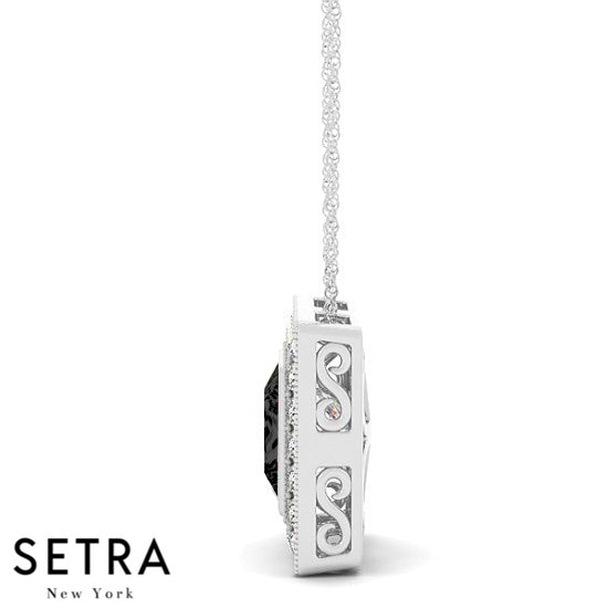 Diamonds & Princess Cut Black D. Necklace 14kt Gold
