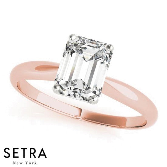 Lab Grown Diamond 14k Emerald Cut Solitaire Engagement Ring