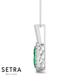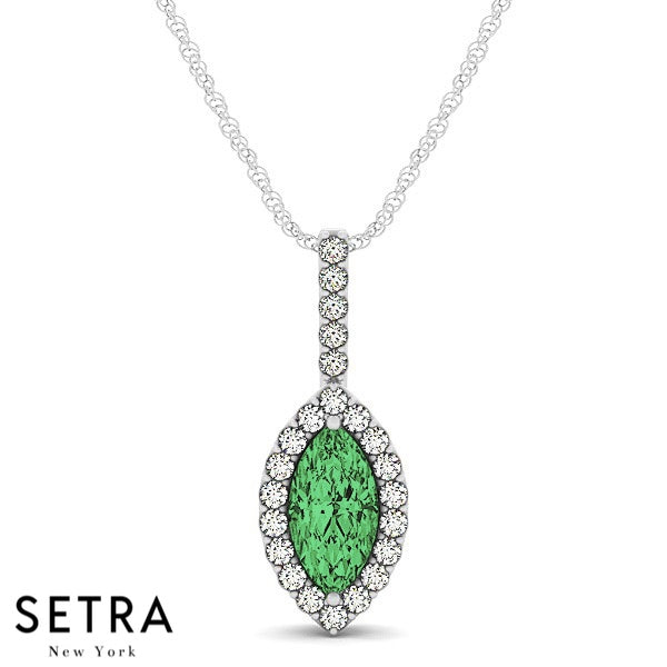 Diamonds & Marquise Green Emerald Necklace 14kt Gold