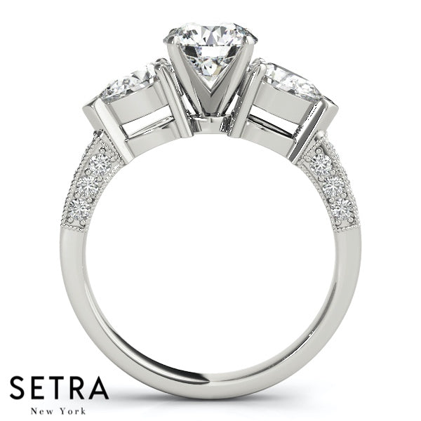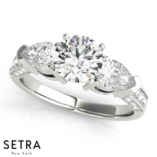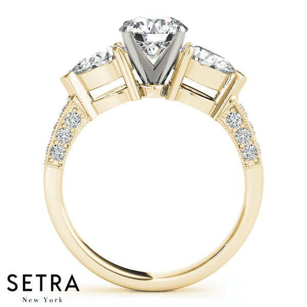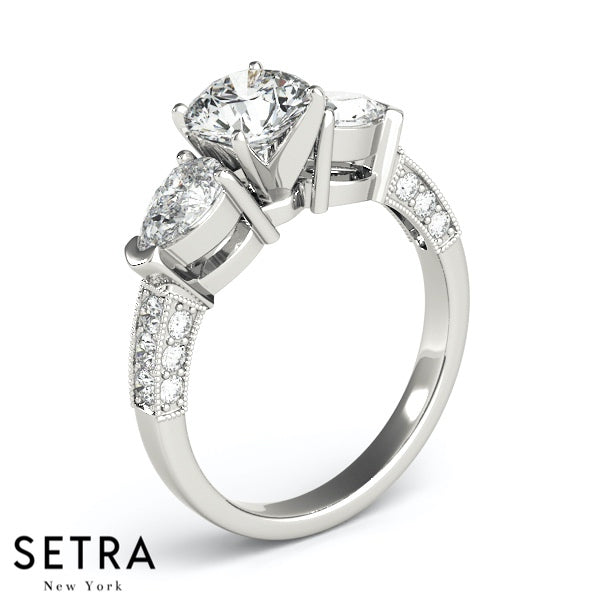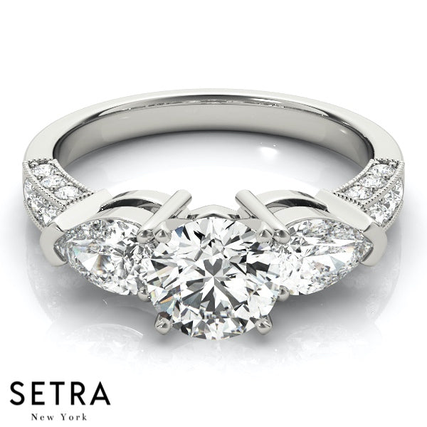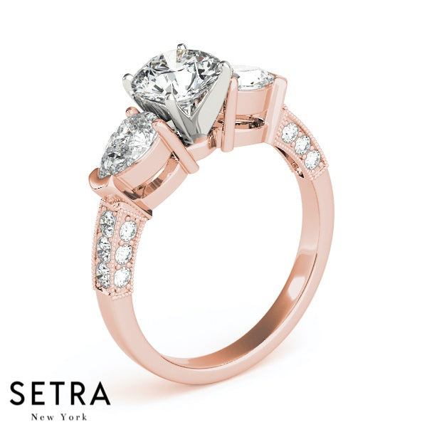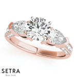 Lab Grown Diamonds Marquise & Round Cut Engagement 14kt Gold Ring