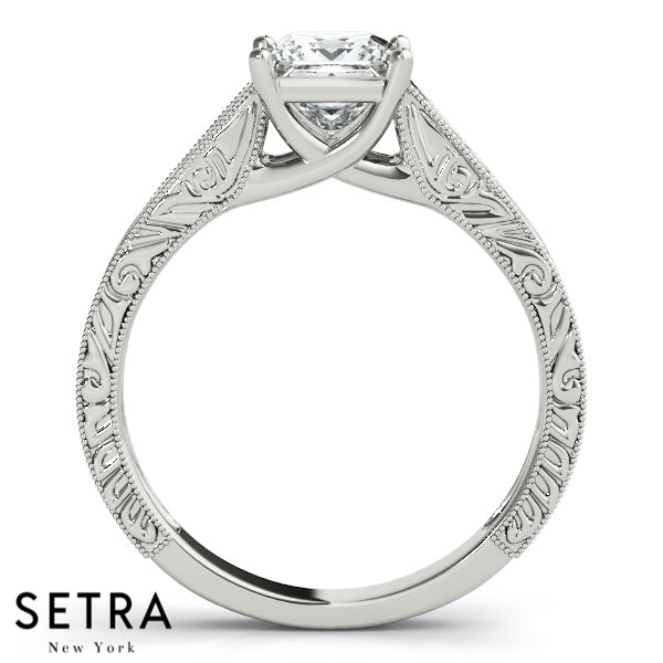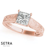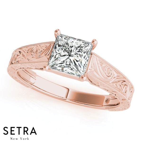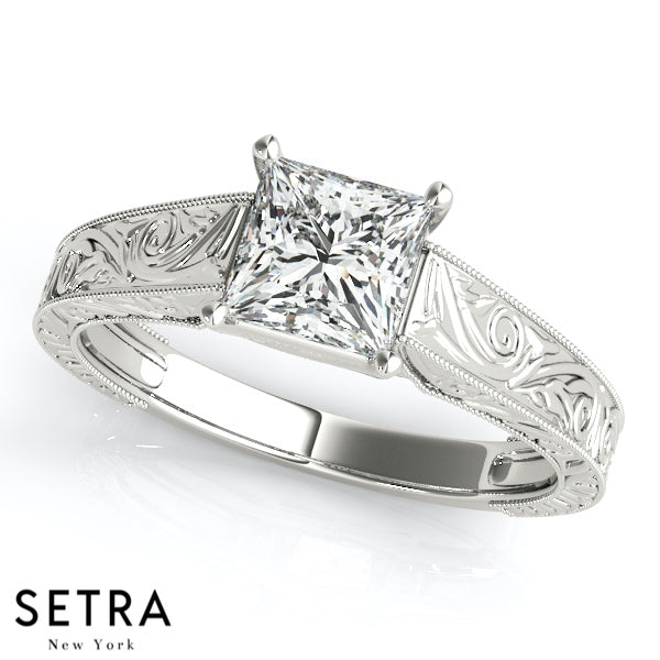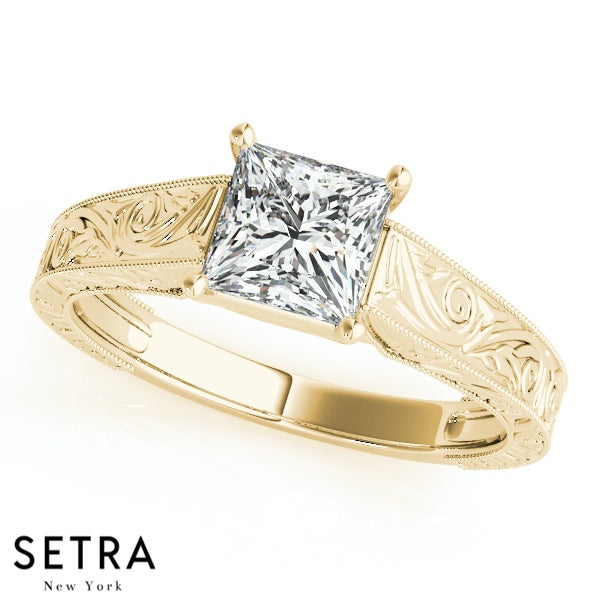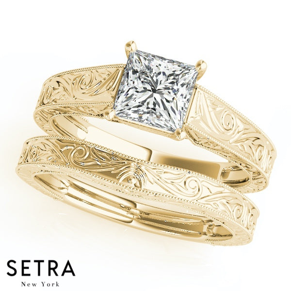 Lab Grown Diamond Ventage Solitaire Princess Set Of Engagement 14kt Gold Ring