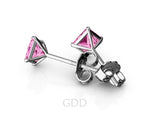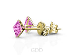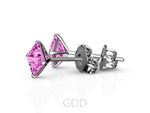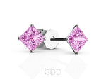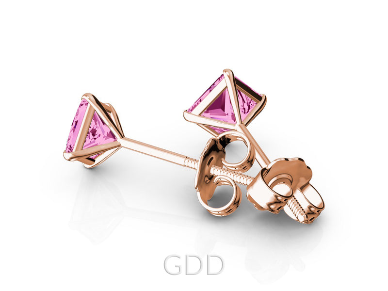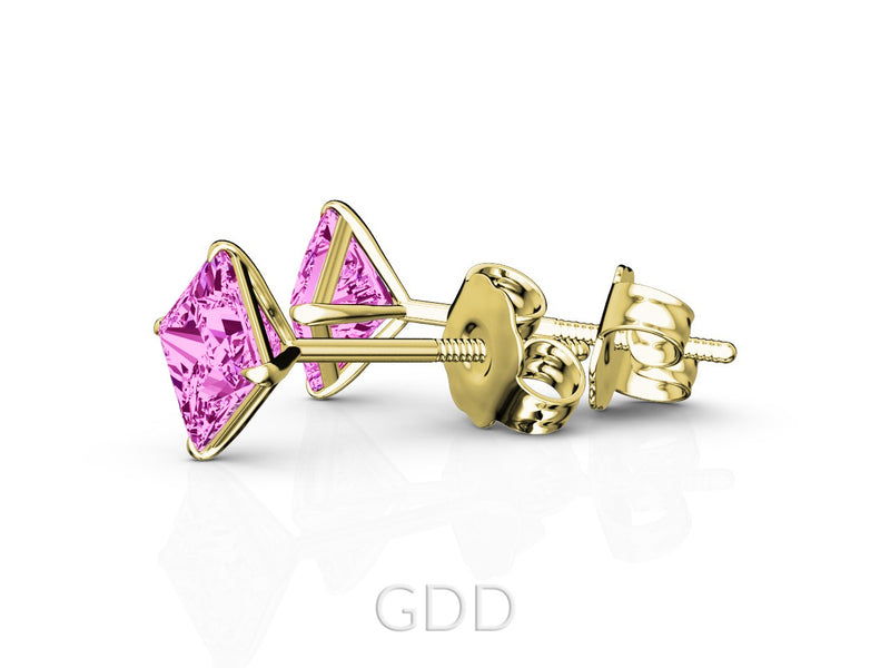 Pink Sapphire Princes Cut Diamonds Stud Earrings 14 kt Gold