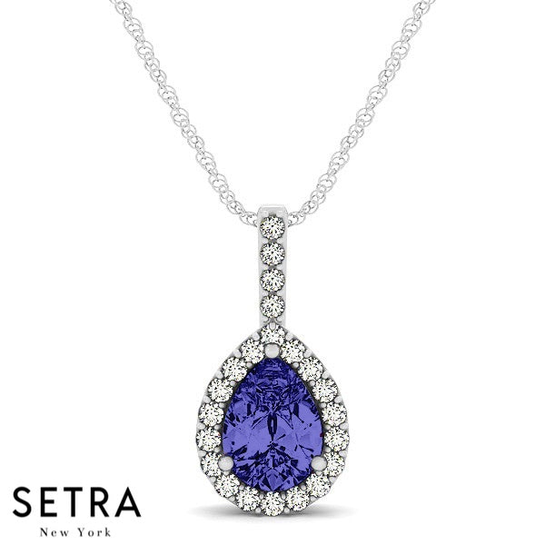 Diamonds & Pear Shape Sapphire Necklace 14kt Gold