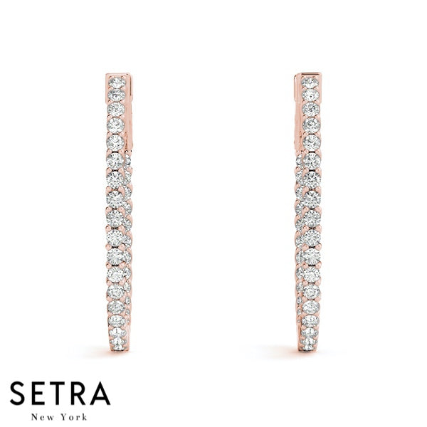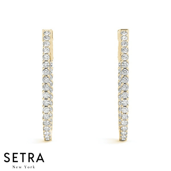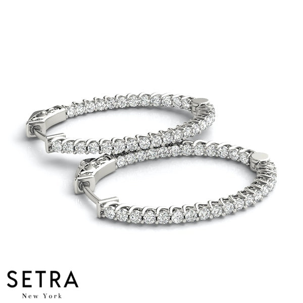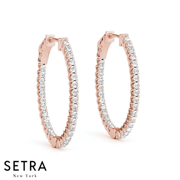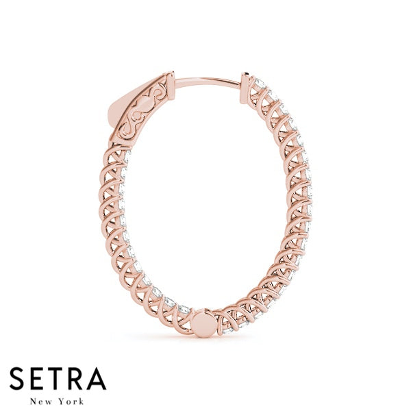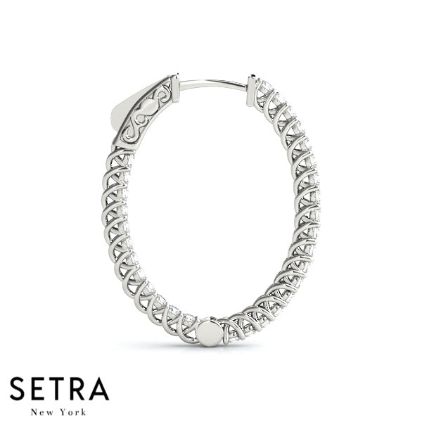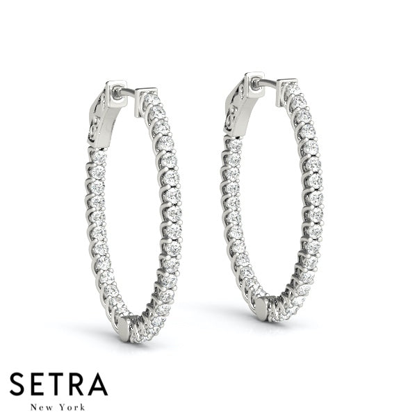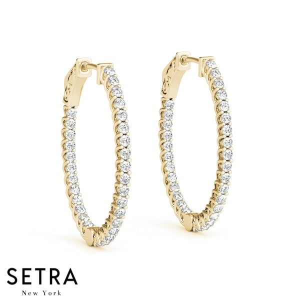 Inside-Out Diamond 36mm Hoop Oval Shape Earrings 14K Gold