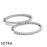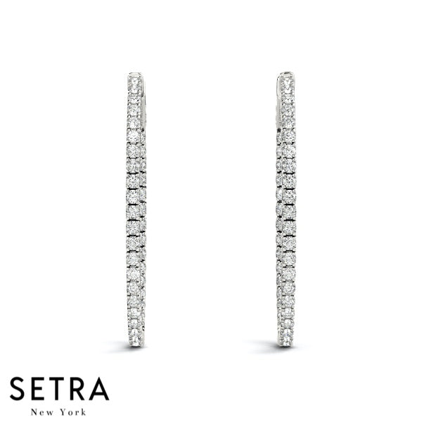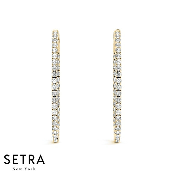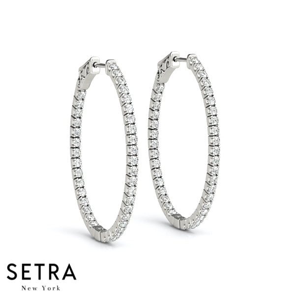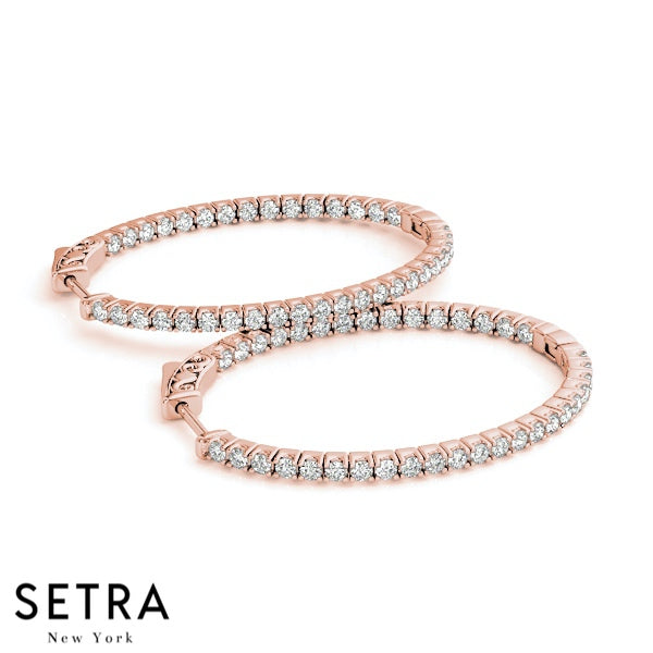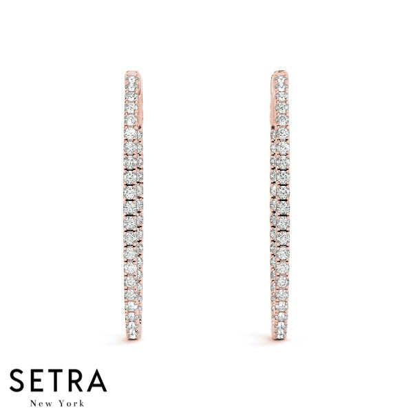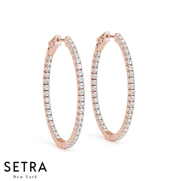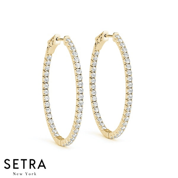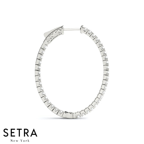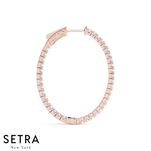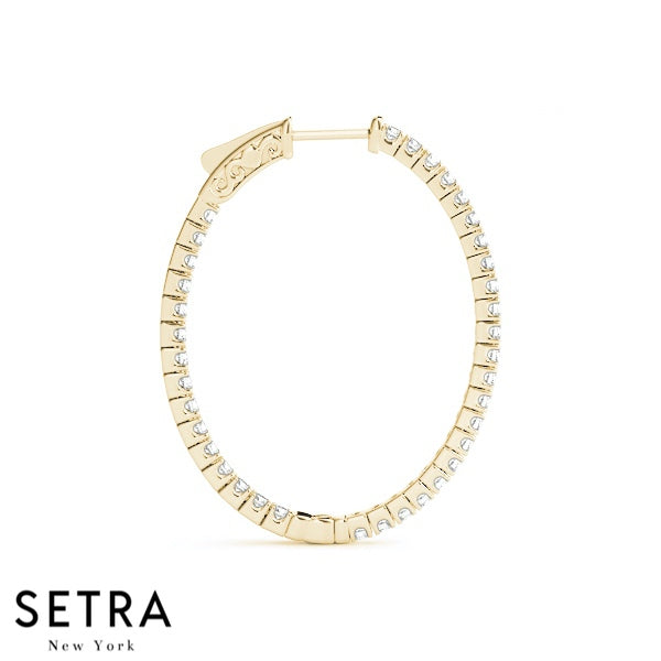 Inside-Out Diamond Vault Lock Hoop 22mm Oval Shape Earrings 14K Gold