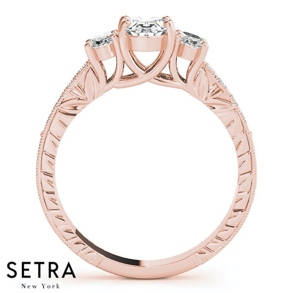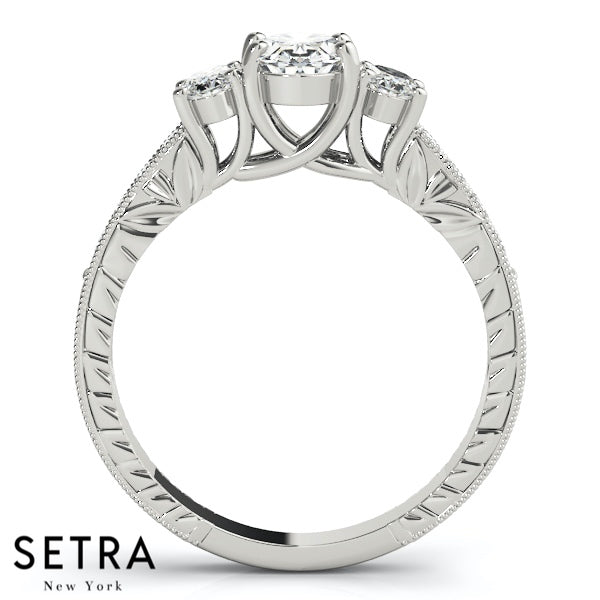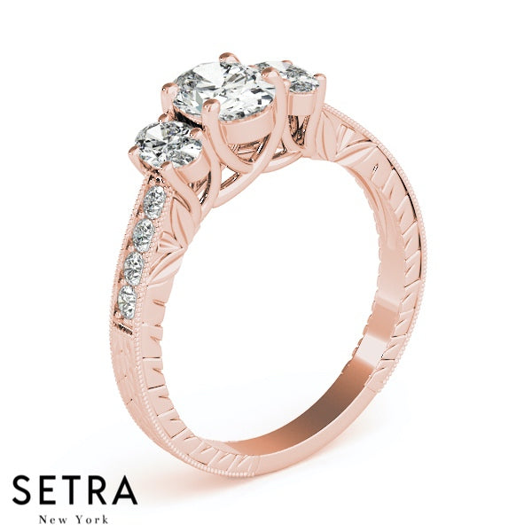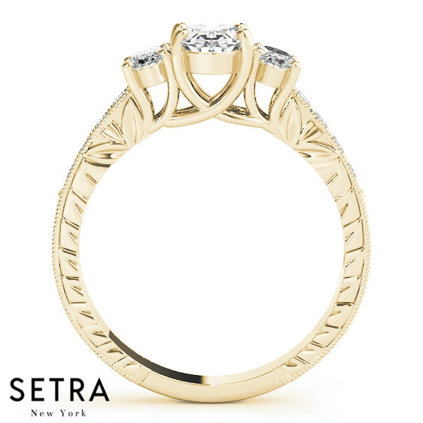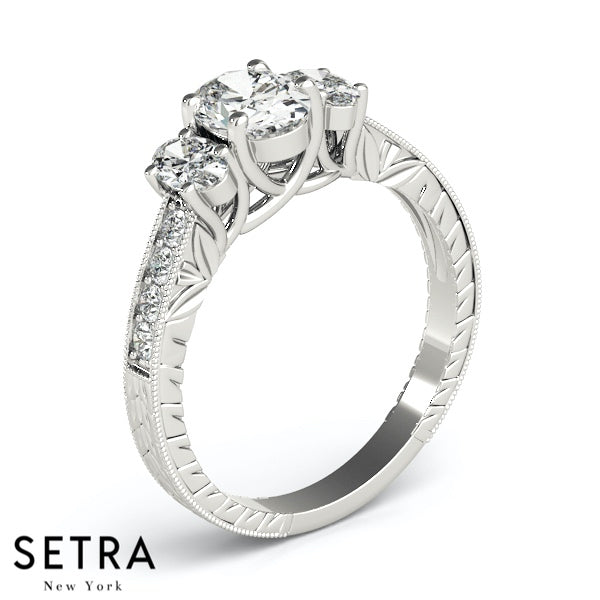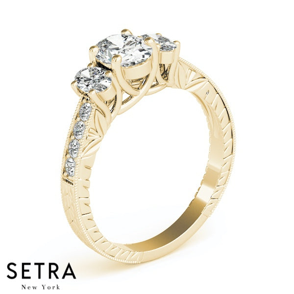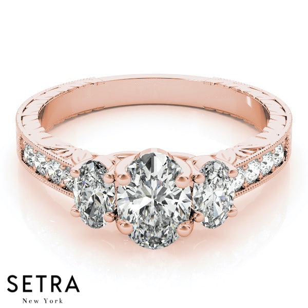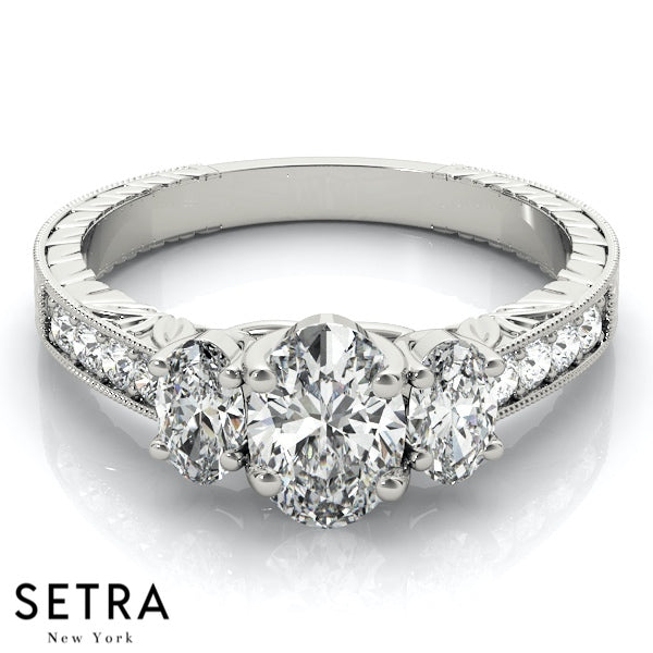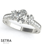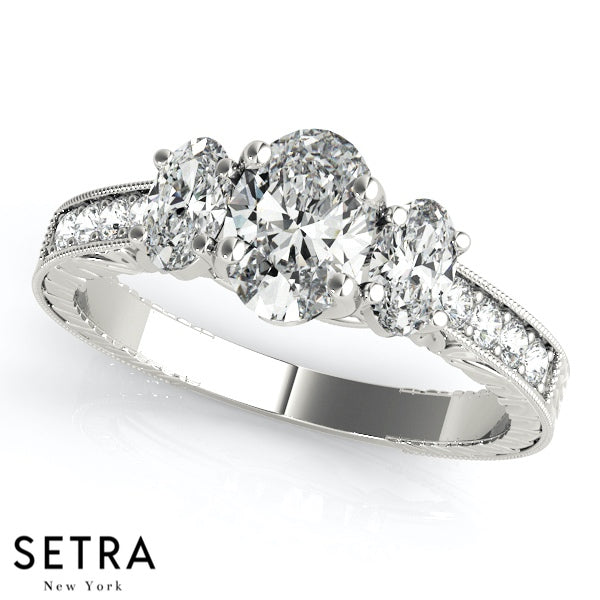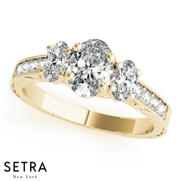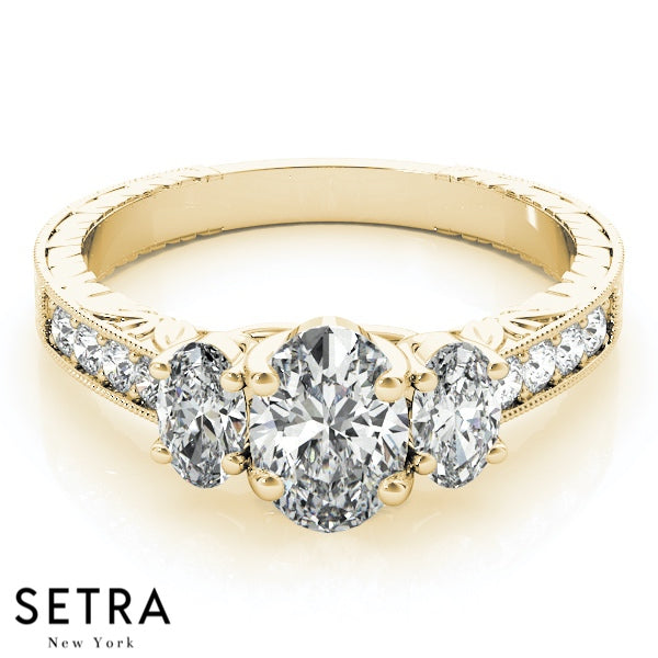 Side Oval Cut Diamond Engagement Rings 14kt Gold
