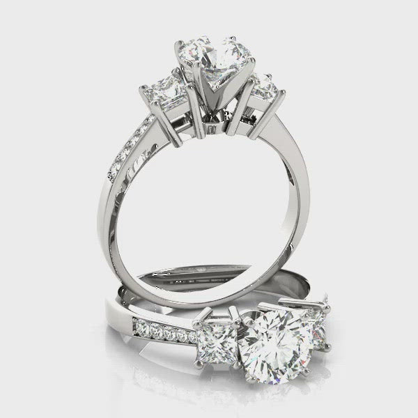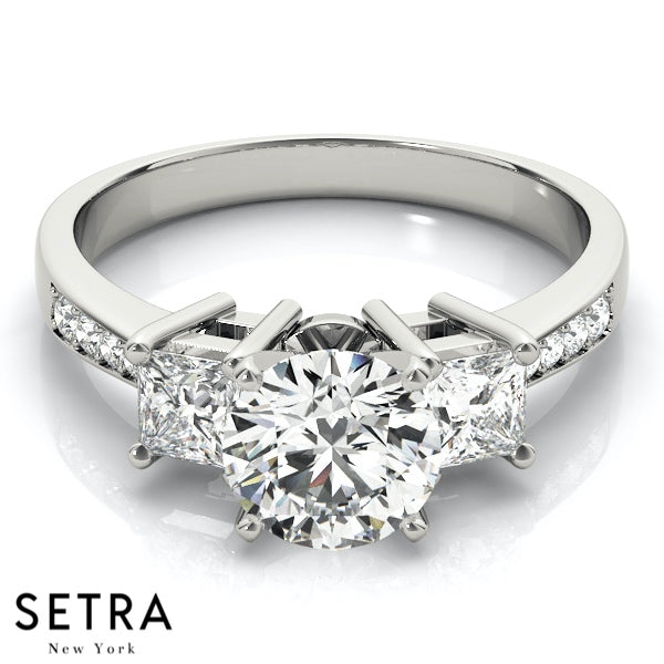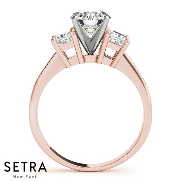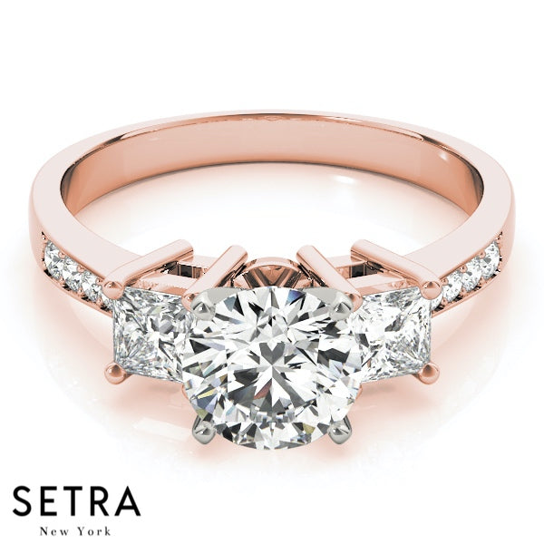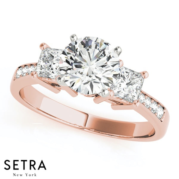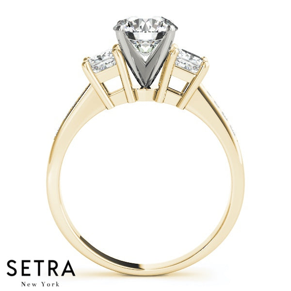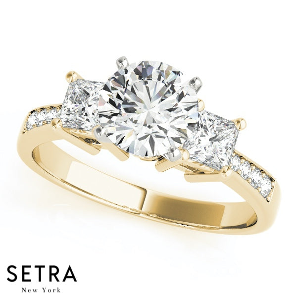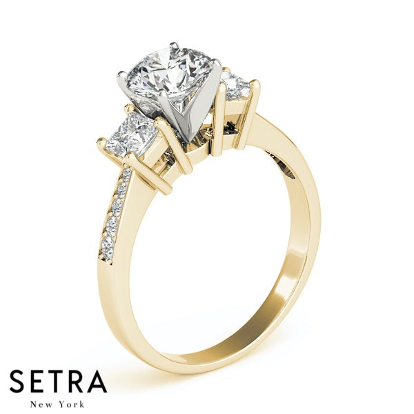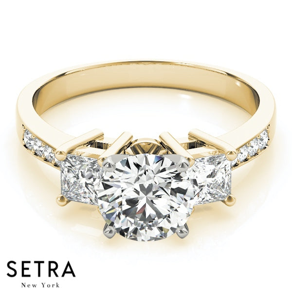Side Princess Cut Diamond Engagement Rings 14kt Gold
