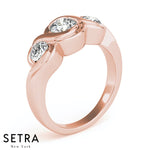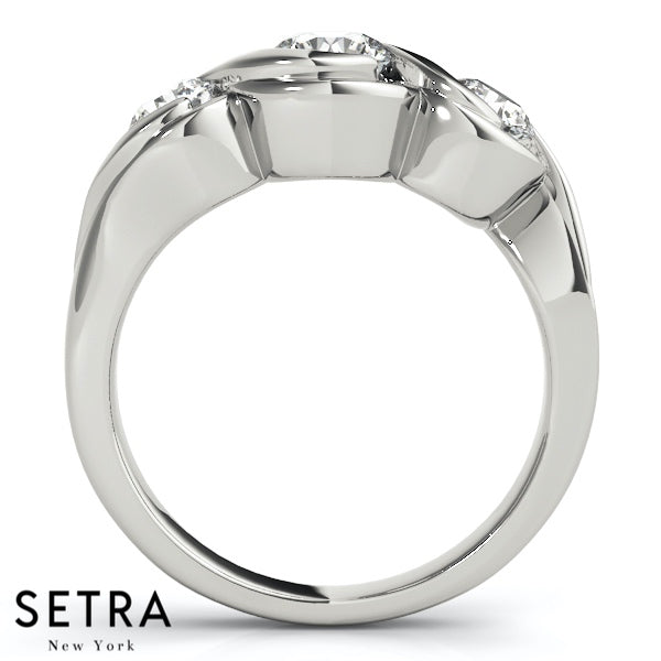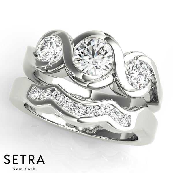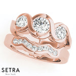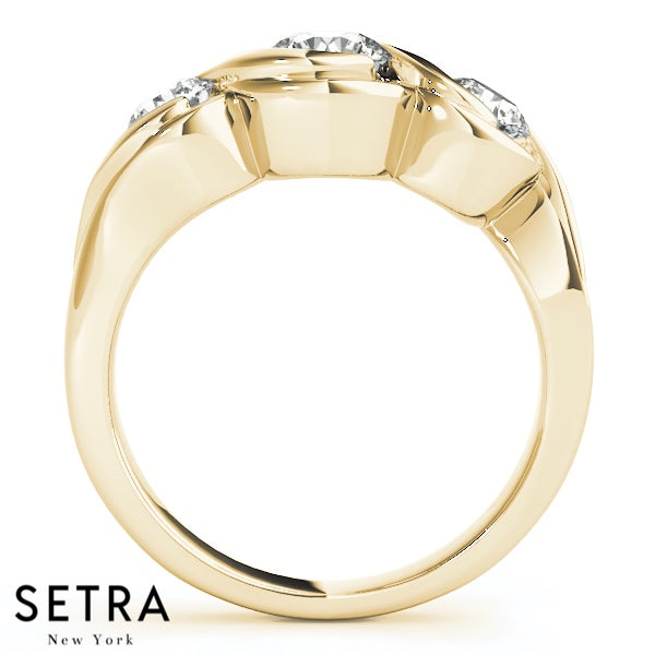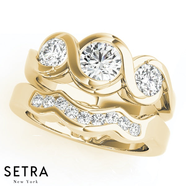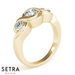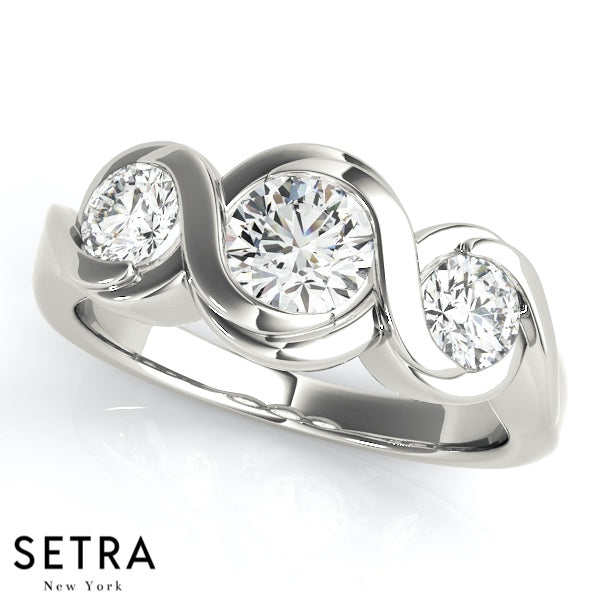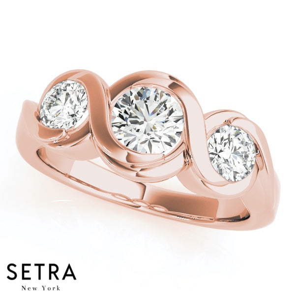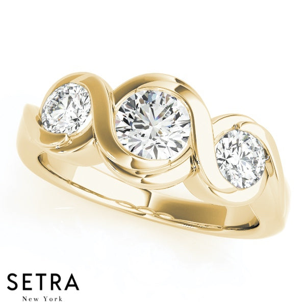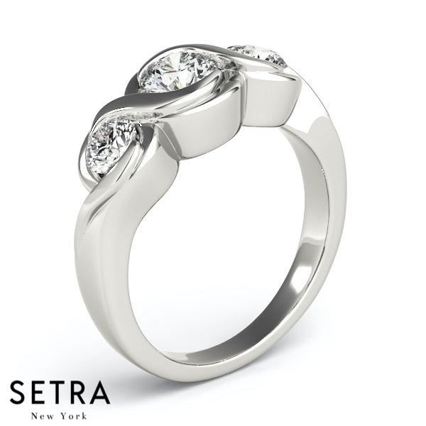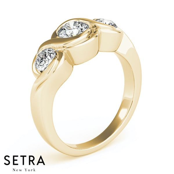 3 Stone Round Cut Diamond Elegant 14kt Fine Gold Engagement Ring
