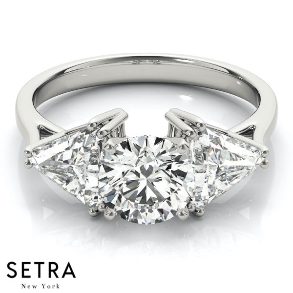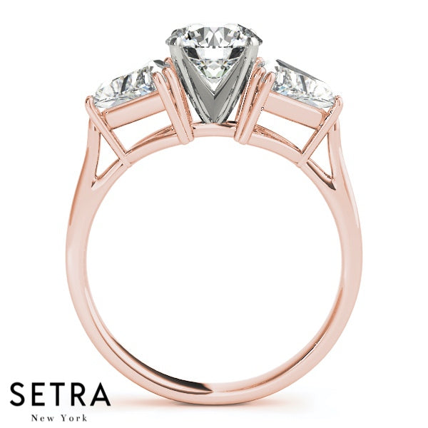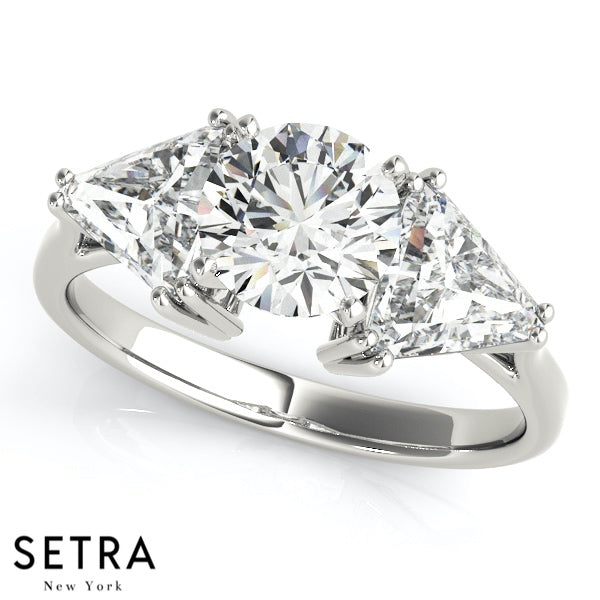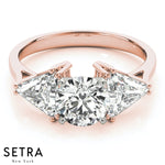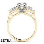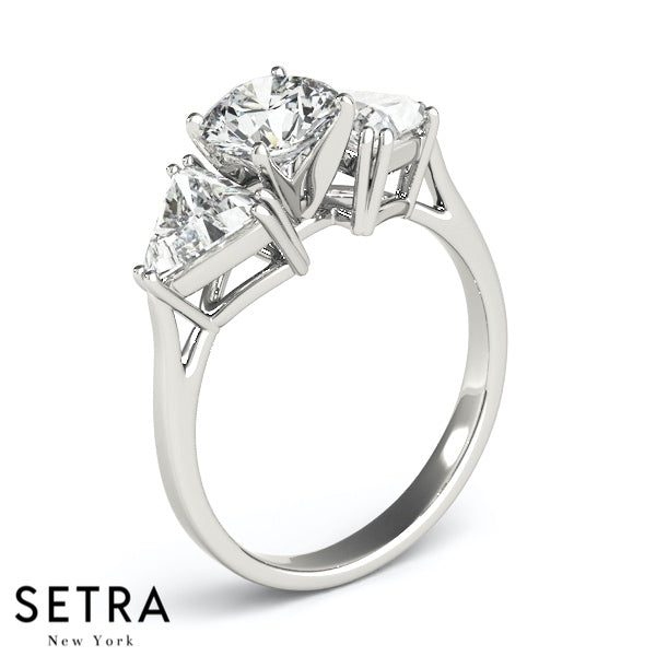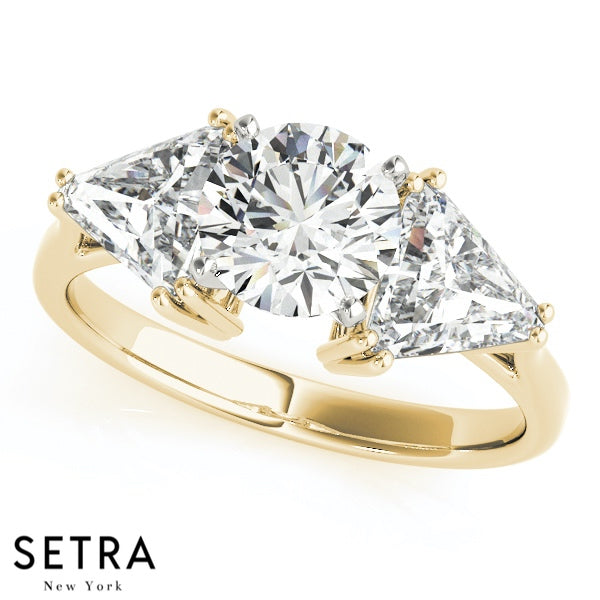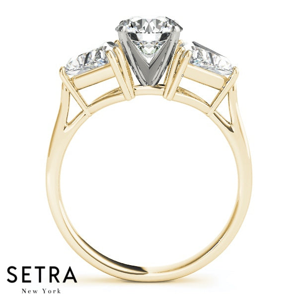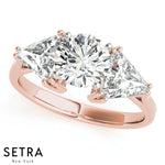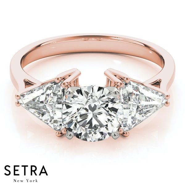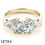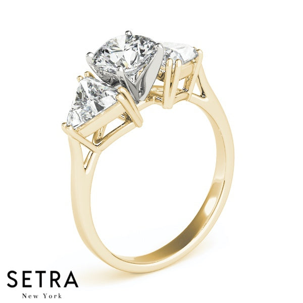 Sides Fancy Triangle Cut Diamonds Engagement Ring 14kt Gold