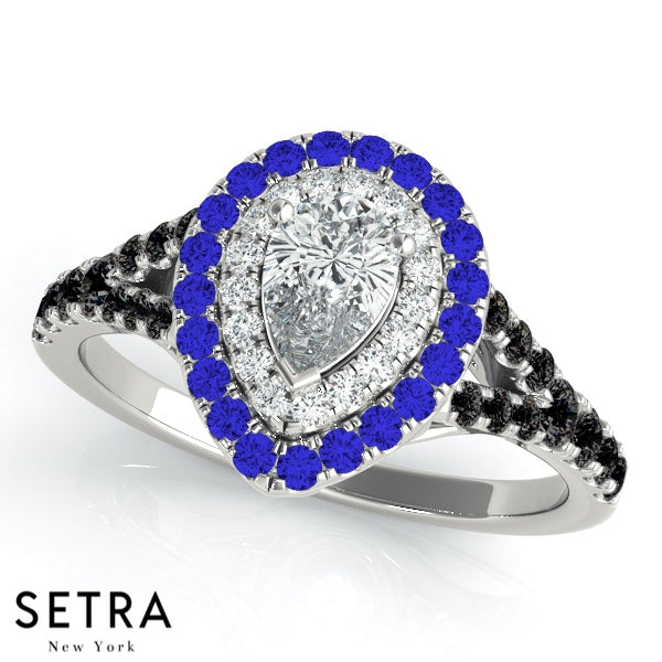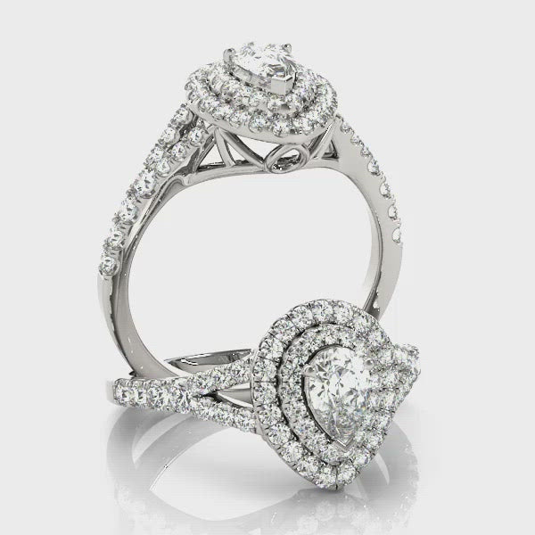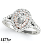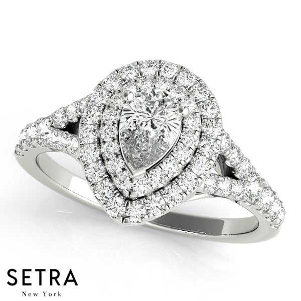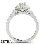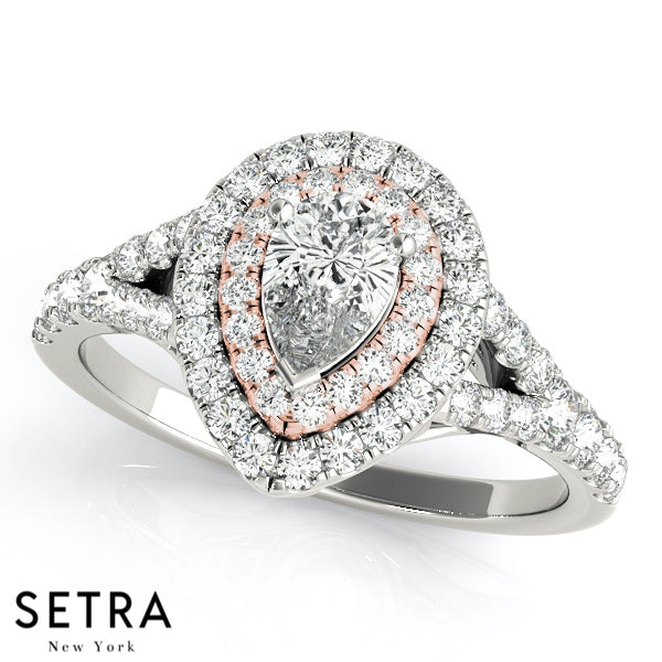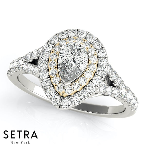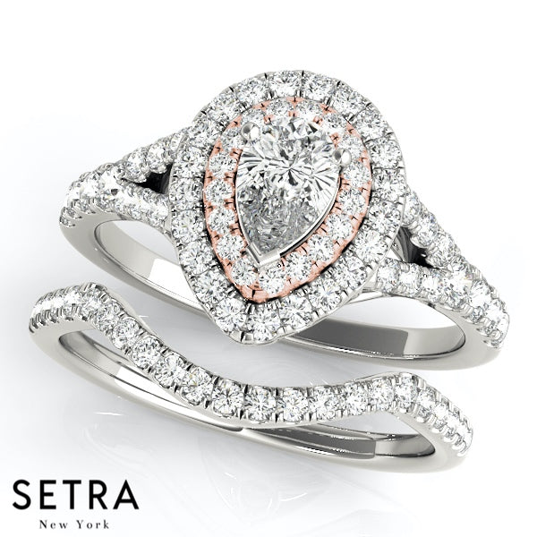 Set Of Diamond Engagement Rings 14kt Gold For Pear Cut Diamond