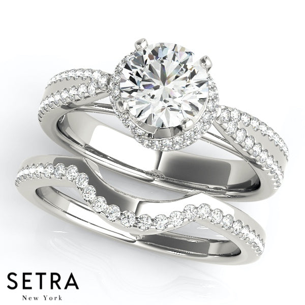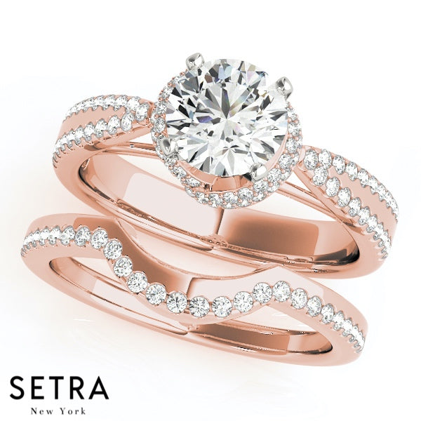 V-Matching Set Of Engagement & Wedding Band 14kt Gold Rings