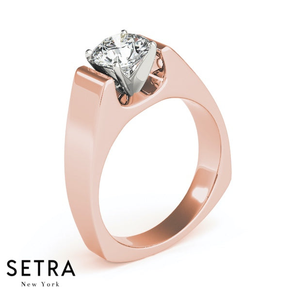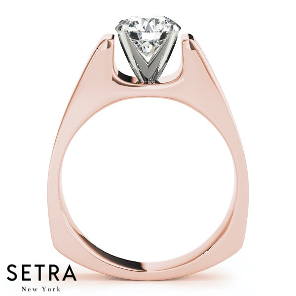 Solitaire Diamond Engagement Ring Solid 14K Gold