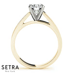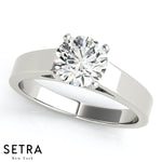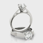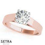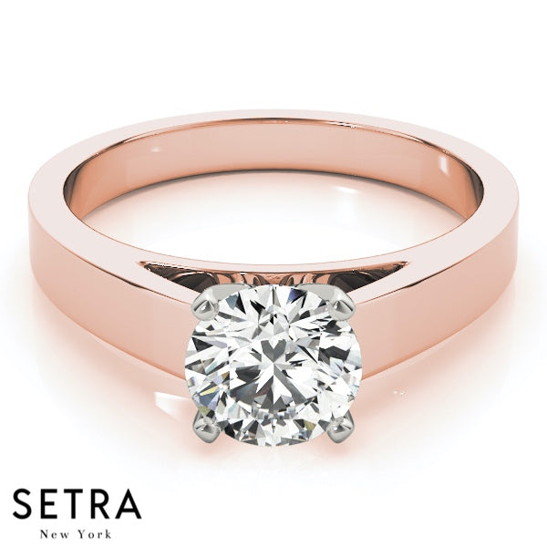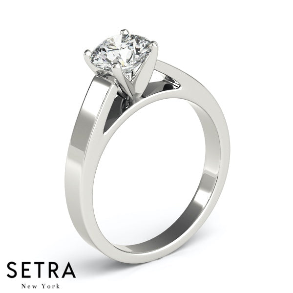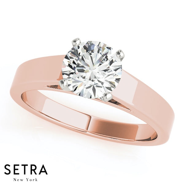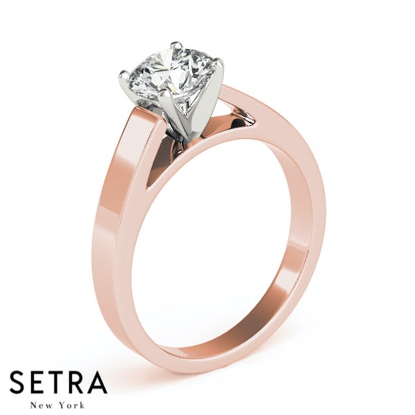 Available in white, yellow or rose gold. Platinum available upon special request. Our complimentary customization service, in which we refine the setting to fit the shape and size of your gemstone or diamond is available for every style. We can also design a matching wedding band if there is not one featured.