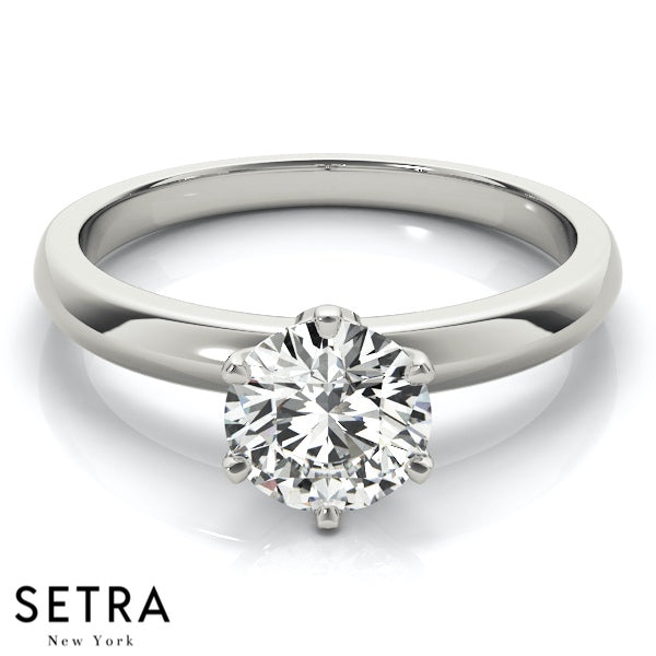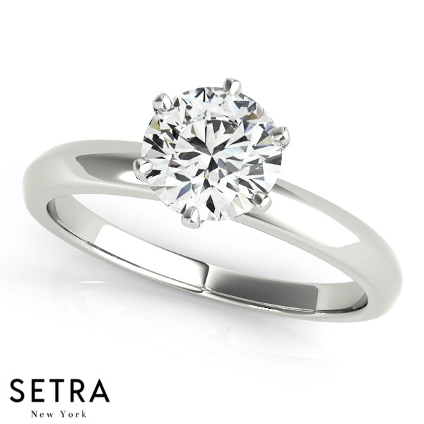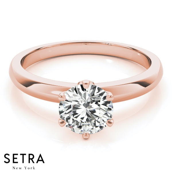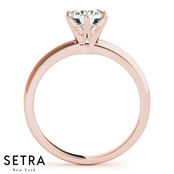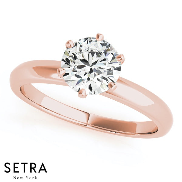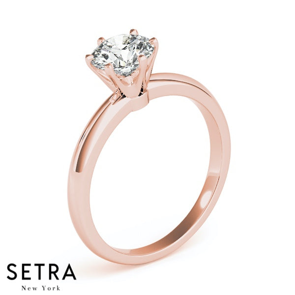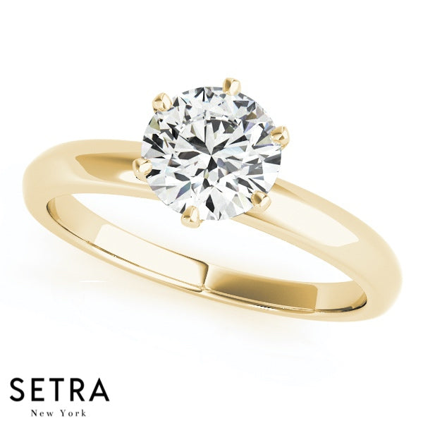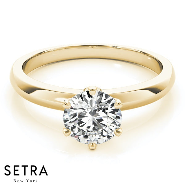 Solitaire Round Diamond Engagement Ring 14K Gold